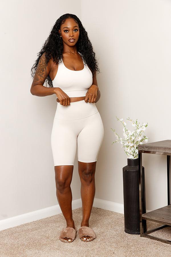EVERYDAY NUDE BIKER SHORTS SET- BONE