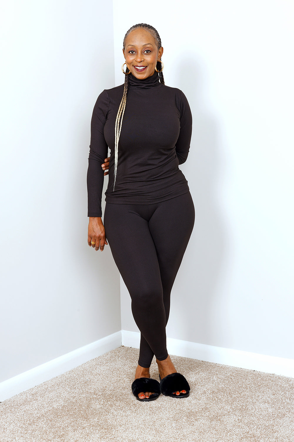 MICROFIBER TURTLENECK LEGGINGS SET| BLACK