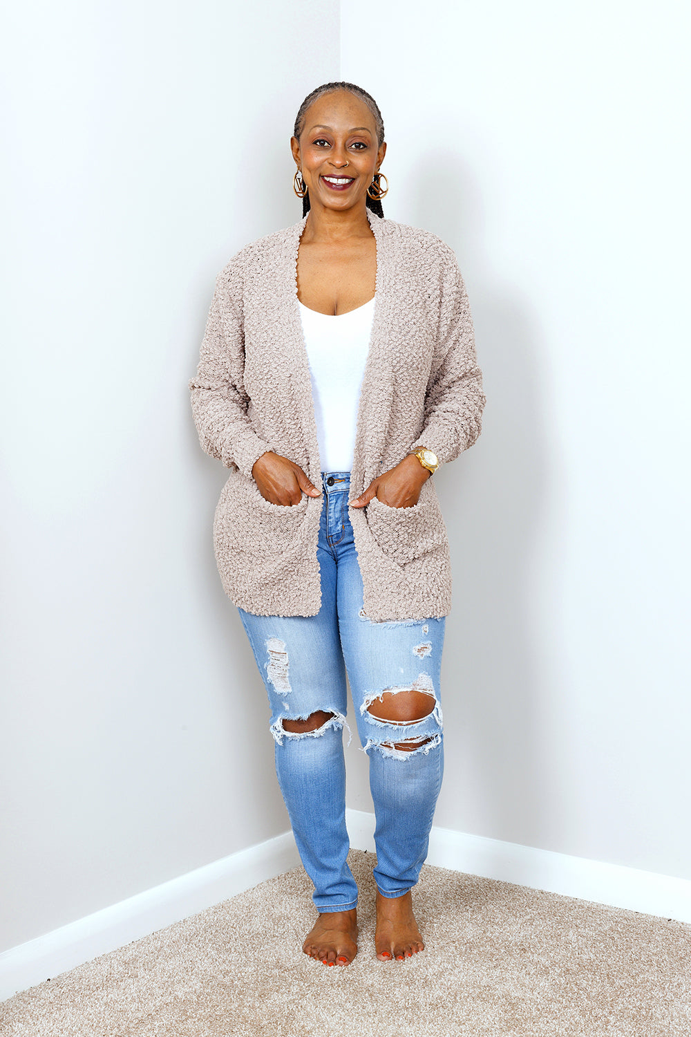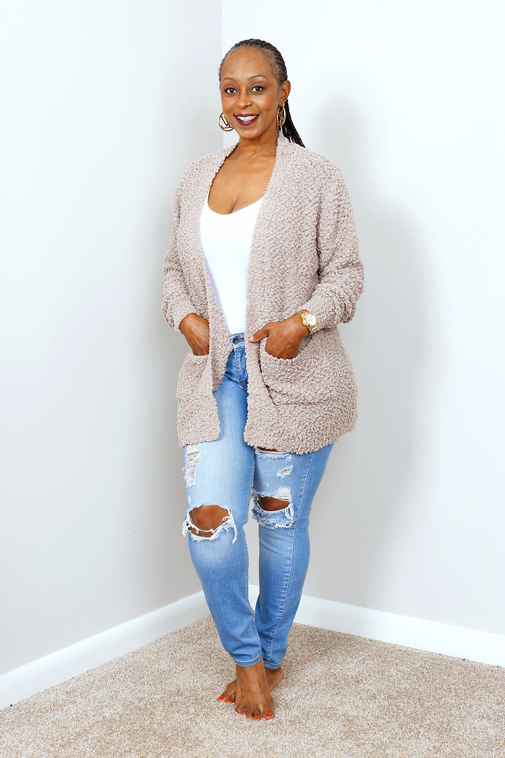 Snuggle up in our Popcorn Cardigan Sweater w/ pockets! Soft, cozy and oh-so-comfy. These everyday essentials are perfect for layering over your favorite loungewear or a top and jeans. Say hello to your new go to for laid back warmth and style!
