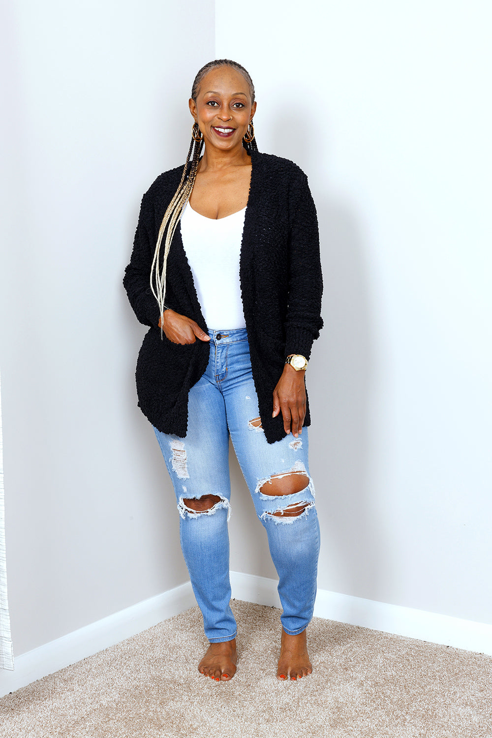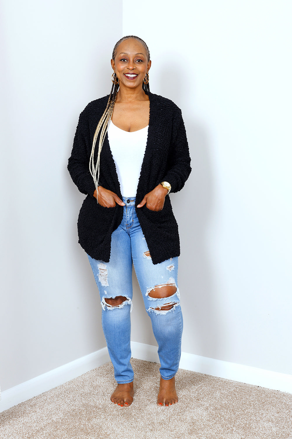 POPCORN CARDIGAN SWEATER w/ POCKETS| BLACK