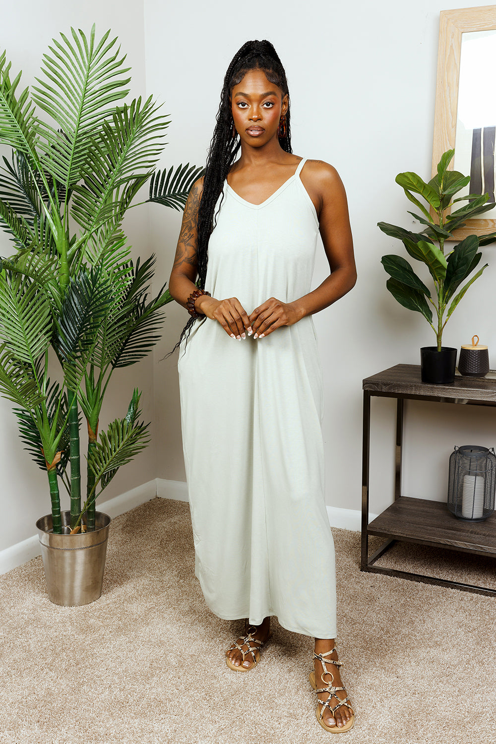 V-NECK CAMI MAXI DRESS w/ SIDE POCKETS| SAGE
